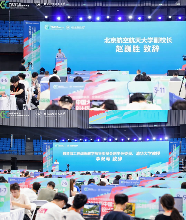 大赛开幕式在北京航空航天大学杭州国际校园举行。开幕式由北航学院院长兼工程训练中心主任刘虎主持,开幕式上,杭州市余杭区委常委、区人民政府常务副区长梅建胜,北京航空航天大学副校长赵巍胜,教育部工程训练教学指导委员会副主任委员、清华大学教授李双寿分别致辞,赛事裁判代表、参赛学生代表先后宣誓。现场出席开幕式的还有天月山实验室首席科学家、C919常务副总设计师、C929首任总设计师陈迎春,杭州市科学技术协会党组成员、二级巡视员鲁玉安等嘉宾和北航相关单位负责人,大赛组委会和专家委员会的专家,以及全体参赛选手与指导老师。